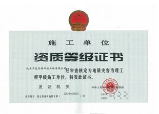 地质灾害施工甲级资质证书