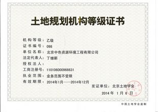 土地规划乙级资质证书
